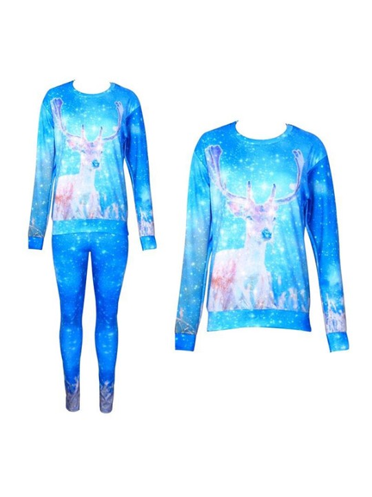 Fashion Women's 2PCS 3D Print deerlet Sweatshirt Set /w Pants Suit Sets