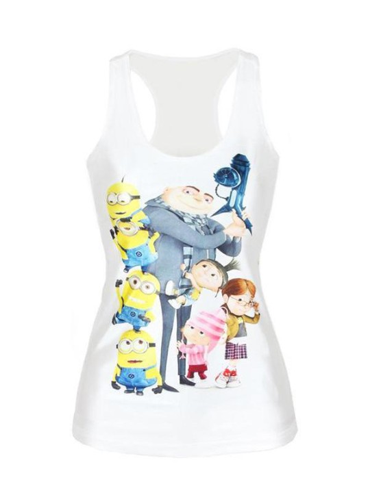 Women'S Cute Despicable Me Digital Printed Sleeveless T Shirt Vest Tank Tops (White)