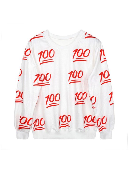 Women's Fashion Emoji Print Pattern Loose Pullover Sweatshirt with Trousers Suit Sets